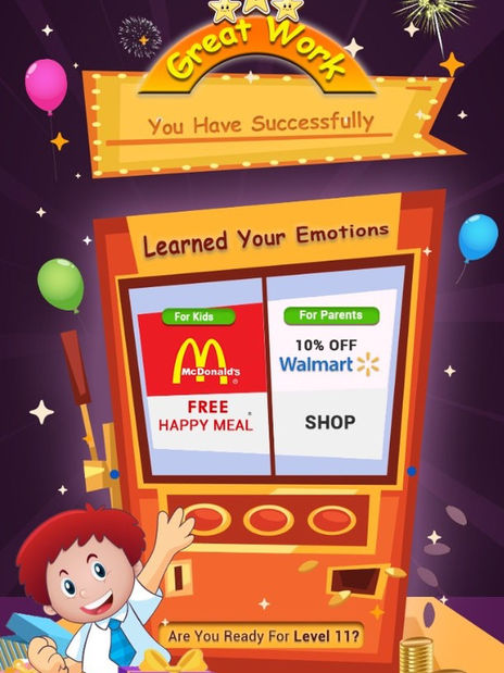 We are pleased to show you the completed design frames for the tenth level of the EarlyBird mobile app, where children will learn how to identify and understand their different emotions through video tutorials, an interactive game, and a ten-question test at the end, followed by a reward!