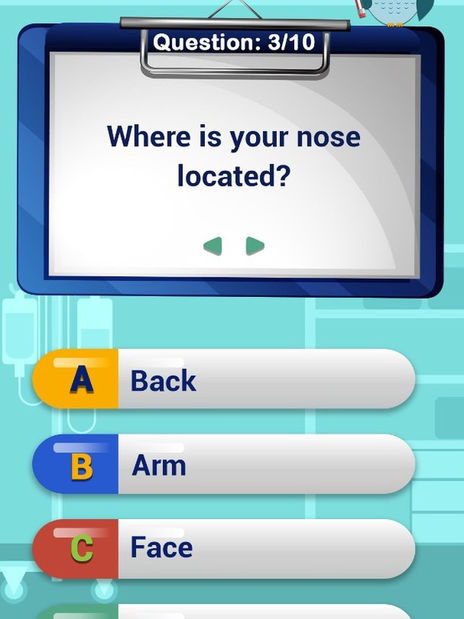 We are pleased to show you the completed design frames for the ninth level of the EarlyBird mobile app, where children will learn how to identify human anatomy and their body parts through video tutorials, an interactive game, and a ten-question test at the end, followed by a reward!